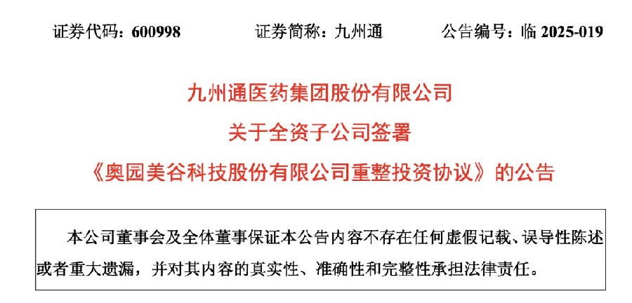 九州通向醫(yī)美領(lǐng)域再邁出一大步。 01 斥資超6億 九州通重整ST美谷 4月23日,九州通發(fā)布公告稱(chēng),全資子公司湖北九州產(chǎn)業(yè)園區(qū)運(yùn)營(yíng)管理有限公司(以下簡(jiǎn)稱(chēng)“九州產(chǎn)投公司”)與奧園美谷及其預(yù)重整期間臨時(shí)管理人簽訂《奧園美谷科技股份有限公司重整投資協(xié)議》,擬出資6.73億元取得重整后奧園美谷3.6億股轉(zhuǎn)增股票。 賽柏藍(lán)查詢(xún)發(fā)現(xiàn),奧園美谷目前無(wú)實(shí)際控制人,第一大股東深圳奧園科星投資有限公司的持股數(shù)為1.72億股。如果此次重整計(jì)劃順利完成,九州產(chǎn)投公司有望成為ST美谷控股股東。 九州通認(rèn)為,此次重整投資將對(duì)其醫(yī)美等業(yè)務(wù)產(chǎn)生積極影響,符合長(zhǎng)期戰(zhàn)略發(fā)展規(guī)劃,有利于增強(qiáng)核心競(jìng)爭(zhēng)力。ST美谷醫(yī)美服務(wù)業(yè)務(wù)與其醫(yī)美業(yè)務(wù)具有良好的協(xié)同效應(yīng)。 作為曾經(jīng)因醫(yī)美概念股價(jià)暴漲6倍的明星企業(yè),ST美谷前身是于1996年上市的湖北金環(huán),早期主要從事化纖行業(yè);而后被京漢控股收購(gòu);2020年,奧園集團(tuán)入主并更名為奧園美谷,大步進(jìn)軍醫(yī)美行業(yè)。 為了加快構(gòu)筑醫(yī)美產(chǎn)業(yè)上下游的業(yè)務(wù)優(yōu)勢(shì),奧園美谷通過(guò)并購(gòu)醫(yī)美機(jī)構(gòu)迅速切入這一賽道,包括以6.97億元收購(gòu)盛妝醫(yī)美持有的浙江連天美企業(yè)管理55%的股權(quán),切入中游醫(yī)美服務(wù)賽道;而后其全資子公司廣州奧美又與暨大醫(yī)藥生物中心、暨源生物等簽署戰(zhàn)略合作協(xié)議,進(jìn)軍醫(yī)美產(chǎn)品端等。 如今,ST美谷旗下?lián)碛泻贾葸B天美醫(yī)療美容醫(yī)院、杭州維多利亞醫(yī)療美容醫(yī)院、廣東奧若拉健康管理咨詢(xún)有限公司;其下設(shè)有醫(yī)美事業(yè)部,近年來(lái)醫(yī)美業(yè)務(wù)增長(zhǎng)迅速,業(yè)務(wù)范圍已覆蓋全國(guó)10000余家醫(yī)美服務(wù)機(jī)構(gòu)。 但ST美谷在大力開(kāi)拓“美麗新事業(yè)”的同時(shí),交出的業(yè)績(jī)并不如人意。根據(jù)ST美谷業(yè)績(jī)預(yù)告,2024年預(yù)計(jì)虧損3.2億元至4.5億元,歸屬于上市公司股東的凈資產(chǎn)為-1.2億元至-2.4億元。 2025年4月,湖北證監(jiān)局發(fā)布公告,對(duì)奧園美谷采取出具警示函的行政監(jiān)管措施。2024年11月18日,奧園美谷的一位債權(quán)人廣州律建財(cái)稅咨詢(xún)有限公司向湖北省襄陽(yáng)中院申請(qǐng)對(duì)其進(jìn)行重整及預(yù)重整,理由是其“未能清償?shù)狡趥鶆?wù),且已明顯缺乏清償能力但具有一定的重整價(jià)值”。 ST美谷深陷退市風(fēng)險(xiǎn)與債務(wù)危機(jī)的雙重困境。 不過(guò),奧園美谷重整仍然引起行業(yè)的廣泛參與。在其臨時(shí)管理人下發(fā)出招募重整投資人、公開(kāi)選聘審計(jì)和評(píng)估機(jī)構(gòu)的通知后,截至2025年1月3日,共有45家(以聯(lián)合體形式報(bào)名算作1家)意向投資人提交報(bào)名材料并足額繳納報(bào)名保證金,其中含14家具備產(chǎn)業(yè)相關(guān)背景。 三個(gè)月后,九州產(chǎn)投公司參與ST美谷重整。這一交易頗具誠(chéng)意,九州產(chǎn)投公司按照產(chǎn)業(yè)投資人的投資價(jià)格受讓奧園美谷本次轉(zhuǎn)增的股票,受讓標(biāo)的股份價(jià)格為1.87元/股。這一價(jià)格相較于ST美谷4月23日收盤(pán)價(jià)3.73元/股,基本是打了對(duì)折。 02 加碼醫(yī)美賽道 實(shí)現(xiàn)業(yè)務(wù)協(xié)同 在醫(yī)美領(lǐng)域,九州通主要專(zhuān)注于醫(yī)美細(xì)分行業(yè)市場(chǎng),提供醫(yī)美專(zhuān)屬藥品和耗材“一站式”采購(gòu)服務(wù)。 醫(yī)美是九州通發(fā)展的重要業(yè)務(wù)之一,2023年醫(yī)美業(yè)務(wù)增長(zhǎng)態(tài)勢(shì)強(qiáng)勁,實(shí)現(xiàn)銷(xiāo)售收入3.42億元,較上年同期增長(zhǎng)103.06%,實(shí)現(xiàn)醫(yī)美業(yè)務(wù)覆蓋5714家醫(yī)美機(jī)構(gòu),線上活躍客戶(hù)達(dá)到1864家。2024年上半年,九州通產(chǎn)品戰(zhàn)略發(fā)展事業(yè)部上半年開(kāi)展了近70個(gè)項(xiàng)目的調(diào)研工作,包括醫(yī)美。 九州通在醫(yī)美領(lǐng)域的發(fā)展,不僅僅是財(cái)務(wù)投資,還有與投資標(biāo)的達(dá)成戰(zhàn)略合作,依托自身優(yōu)勢(shì)助力標(biāo)的開(kāi)拓市場(chǎng)的同時(shí),實(shí)現(xiàn)實(shí)現(xiàn)自身業(yè)務(wù)增長(zhǎng)。 這一點(diǎn)早在2016年九州通對(duì)愛(ài)美客的投資上就得到了驗(yàn)證。2016年9月,九州通出資3082.56萬(wàn)元參與愛(ài)美客增資。通過(guò)這筆投資,九州通收益頗豐。2021年上半年九州通超過(guò)21億元的凈利潤(rùn)中,投資收益貢獻(xiàn)過(guò)半,其中投資A股醫(yī)美龍頭愛(ài)美客產(chǎn)生的計(jì)入當(dāng)期的損益就達(dá)到11.49億元。 不僅如此,九州通下屬企業(yè)九州通醫(yī)療器械集團(tuán)與華熙生物達(dá)成戰(zhàn)略合作,雙方依托九州通在國(guó)內(nèi)藥品零售市場(chǎng)雄厚的基礎(chǔ)和健全的網(wǎng)絡(luò)等為華熙生物推進(jìn)“未來(lái)醫(yī)美共生聯(lián)盟”市場(chǎng)戰(zhàn)略作出努力。 “顏值經(jīng)濟(jì)”火熱,根據(jù)行業(yè)數(shù)據(jù