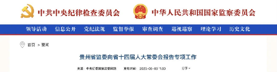 6月3日,中紀委轉(zhuǎn)發(fā)貴州省紀委監(jiān)委專項工作報告。