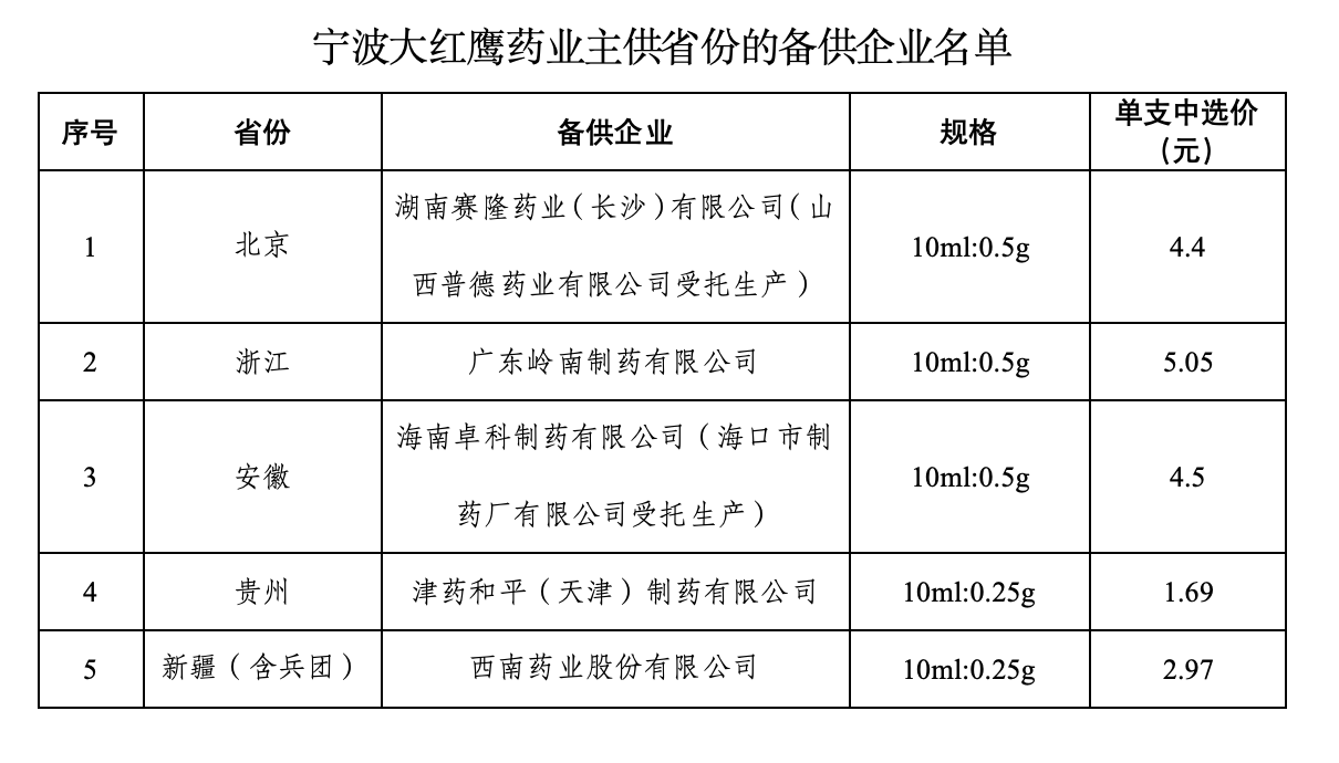 由寧波大紅鷹藥業(yè)股份有限公司作為氟尿嘧啶注射液主供企業(yè)的省份,應(yīng)按照《全國藥品集中采購文件(GY-YD2024-2)》相關(guān)條款啟動替補程序,由備供企業(yè)替補成為主供企業(yè),并按本企業(yè)中選價格供應(yīng);當新確認的主供企業(yè)不能滿足供應(yīng)需求時,由所在省份啟動增補備供企業(yè)流程。